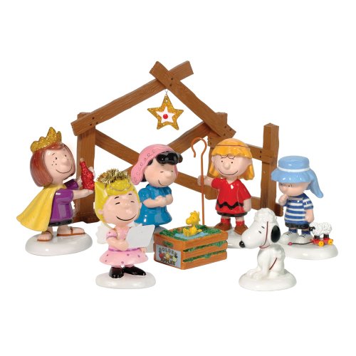 Inspired by the T.V special, Charlie Brown and the gang put on a special Christmas Pageant to the delight of everyone. Woodstock sits in the manager, while Snoopy has been transformed into a little sheep. They play their parts perfectly. A great centerpiece and a great gift. Inspired from the wonderful imagination of Charles Schultz and handcrafted to the delight of Peanuts fans everywhere.