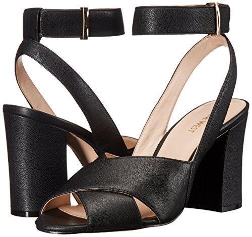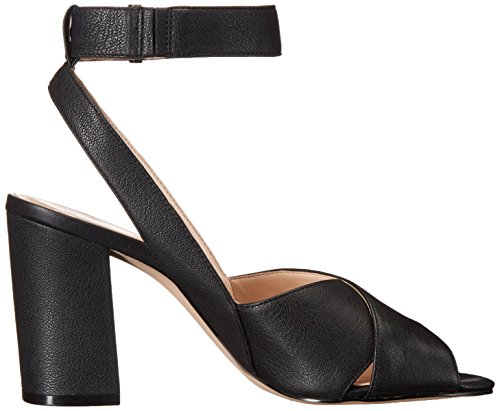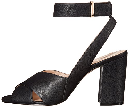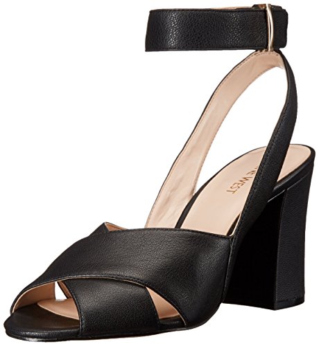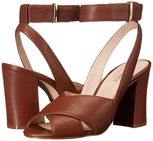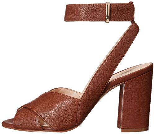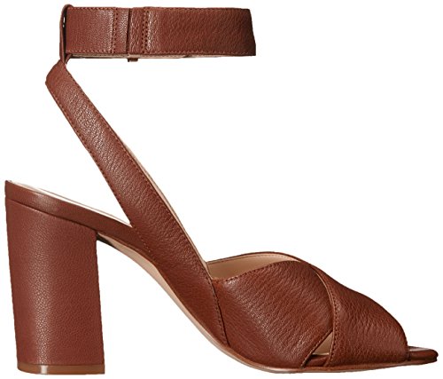 Heeled sandal featuring leather crisscross straps at toe and wraparound strap at ankle