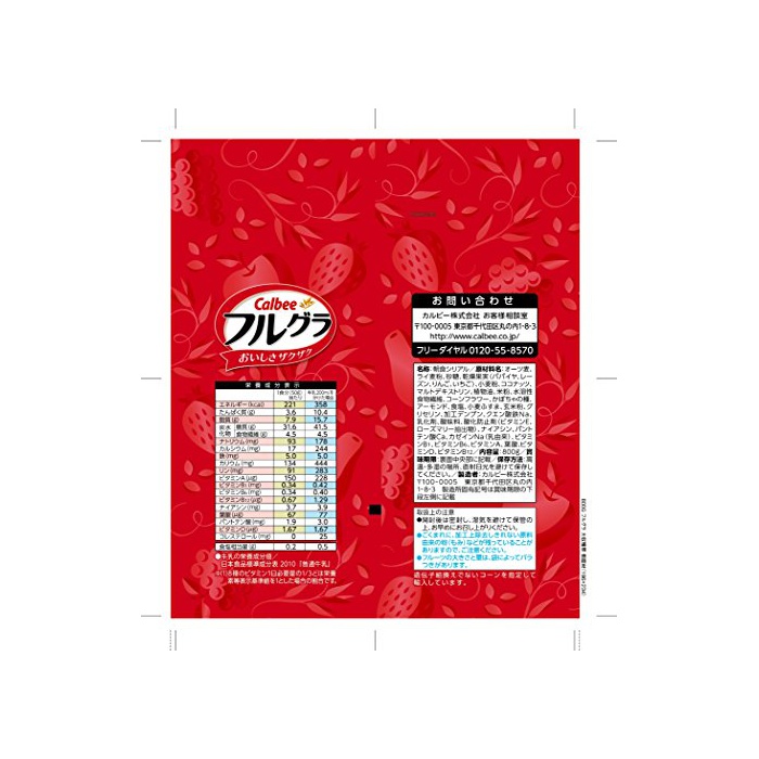 원재료:O《즈》맥,호밀,설탕,건조 과실(파파이아)고,(레이의《》)고,(사과)고,(딸기)고, 코코넛,식물성 기름,정미,덱스트린,수용성 음식물 섬유(난소화 성덱스트린)고, 소맥분,콘,호박의 종,아몬드,식염,밀 # 해결되고, 현미,글리세린,가공 전분,구연산철Na,유화 제(젖을 포함한다)고, 신맛료,산화 방지제(비타민E)고,(rosemary 추출물)고, 나이아신,판토텐산Ca,비타민B1,비타민B6,비타민A,엽산,비타민D,비타민B1