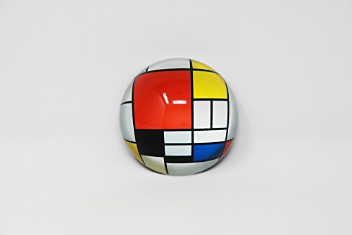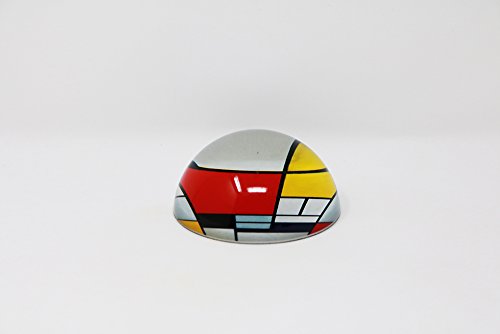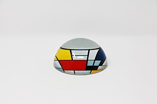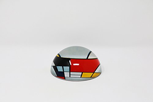 Glass half dome paperweight with Mondrian painting "Composition with large red plane, yellow, black, grey and blue" (1921). This composition is one of the principal works of what Mondrian referred to as Neoplasticism.