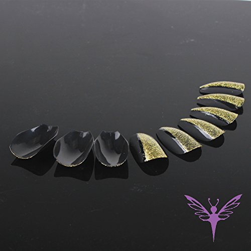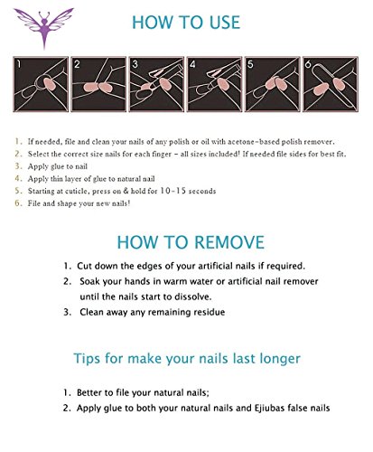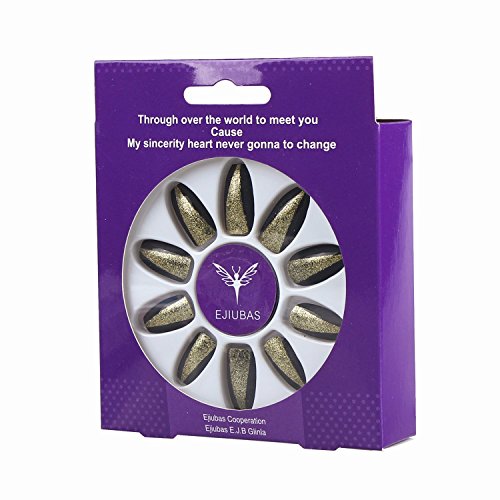 Feature : 1.Matte Squaletto BLACK WITH GOLDEN GLITTER: Give you an air of mystery and secret,noble.The Matte BLACK feel rich ,sexy,imaginative with a glow metali texture.Glitter powder on the face will not easliy peal off but give this nail a color boost and makes your hand look whiter and slimer. / 2.PACKAGE: Includes 24 pcs FULL COVER CLAW LIKE nail tips one high quality glue.Variety of color and sizes (Size Info. given below the description)to choose .Color on the nails will not easily peal off due to our craftsmanship improvment.Glue is better than the most usual ones ,adhesive is perfect enough to last the nails long. / 3.QUALITY PROMISE:internationally certified and EU compliant .Manufactured from high quality virgin ABS plastic.Thousands times of test before selling.Repeated improving and fixing to adapt to people's size and taste. / 4.PROBLEM TO CREATE YOUR OWN NAILS DESIGN ?(1)We are full nail, just need to press-ons, wide nail shape can go over the entire nail bed (2)We have a nice curve at the tip and don't look like stiletto nails, we are legit talons, super suit for any party ! (3)We have the perfectly length, stronger and thick enough,won't be cracked or chipped under normal pressure(4)GLUE IS INCLUDED,high quality,strong adhesive,healthy ,quality control by the Quality inspection organization. / 5.Customer experience is the first place .WE STAND behind our brand Ejiubas and provide 100% full money back guarantee, If, For Whatever Reason, You Don't Absolutely Love your Ejiubas Original False nails. Just contact us and we will do absolutely anything needed.