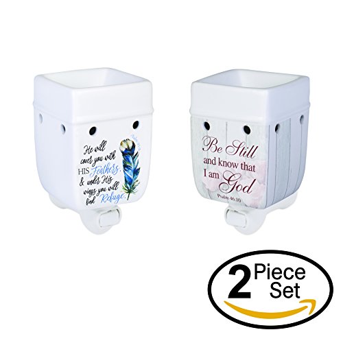 2 Pc Set Refuge Under His Wings, Be Still Scripture Ceramic Stoneware Plug-In Tart Oil Wax Warmers