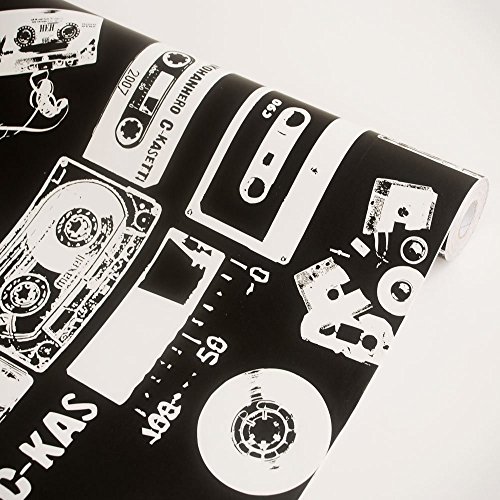 -. Title : SimpleLife4U Black White Contact Paper Retro Cassette Shelf Liner Countertop Door Sticker 17.7inch by 9.8 Feet