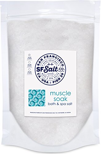 MUSCLE SOAK BATH SALT : 100% Natural Bath Soak with Pure Epsom Salt infused with Eucalyptus & Peppermint Essential Oils, in a natural white color.