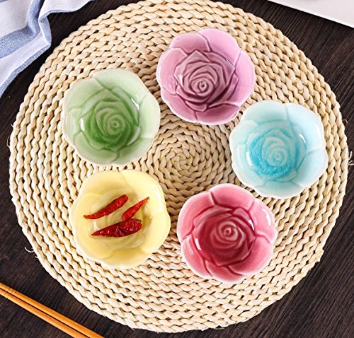- Material: ceramic. Dimensions: rose shape-9*4.5cm. Package included: 5 x rose shape dishes.