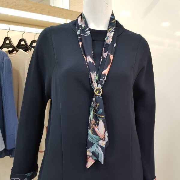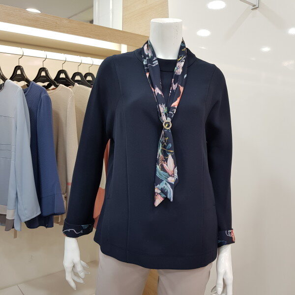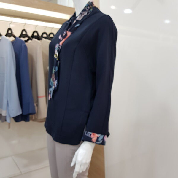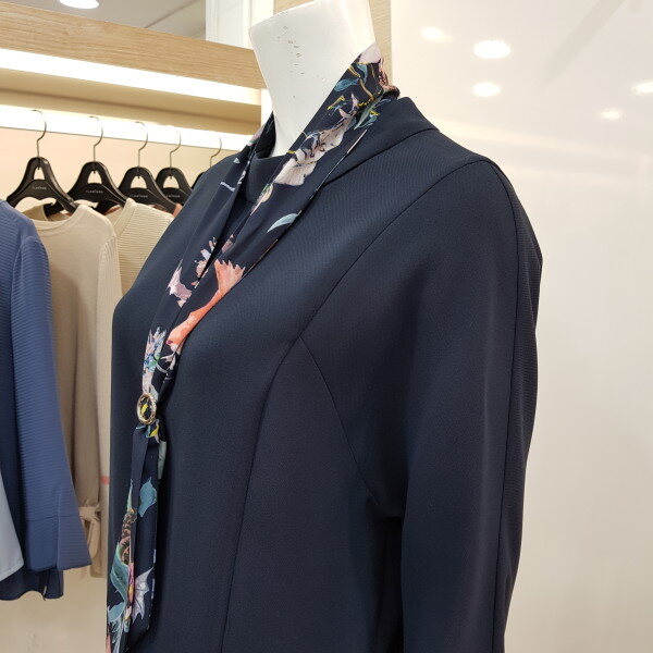 플라워 프린트 소매,타이 포인트를 주어여성스럽고 깔끔한 스타일입니다.