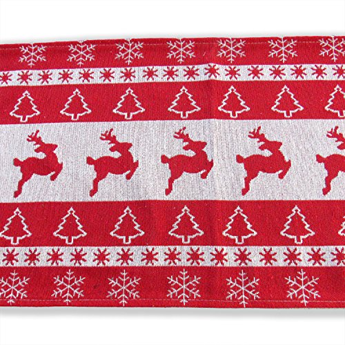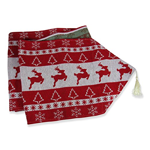 Christmas Table Runner, Red Reindeer Tapestry Design With Tassle, Perfect for Holidays, Christmas or Dinner Party, 13.5” by 84”