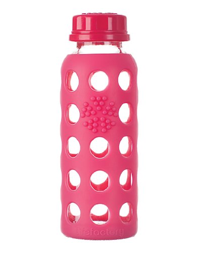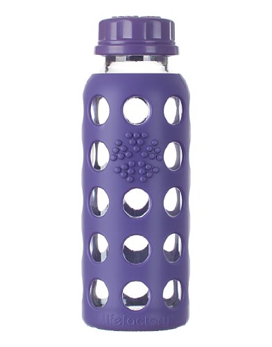 Lifefactory 9-ounce (250 ml) reusable glass water bottles are perfect for kids’ lunchboxes and lightweight on-the-go hydration. The compact bottle comes with a leakproof lid and fits easily into handbags, backpacks, and car cup holders. Providing an excellent alternative to disposable plastic bottles, these innovative bottles feature durable glass construction that offers pure taste. The bottle’s glass is surrounded in a patented silicone sleeve that both protects against breakage and provides a comfortable, non-slip gripping surface. For easy care, the silicone sleeve and bottle can be washed together. All components of the bottle are dishwasher safe. It is recommended to wash the cap on the top rack. The cap is constructed of BPA/BPS-free polypropylene (PP#5) with no phthalates, PVC, or polycarbonates. All Lifefactory components are made in the USA or Europe and all products are assembled in the USA.Feature