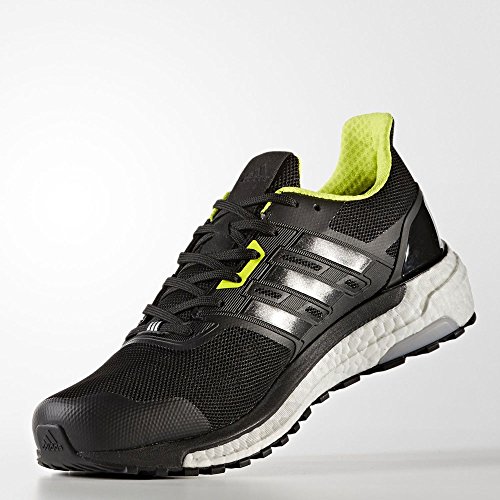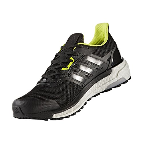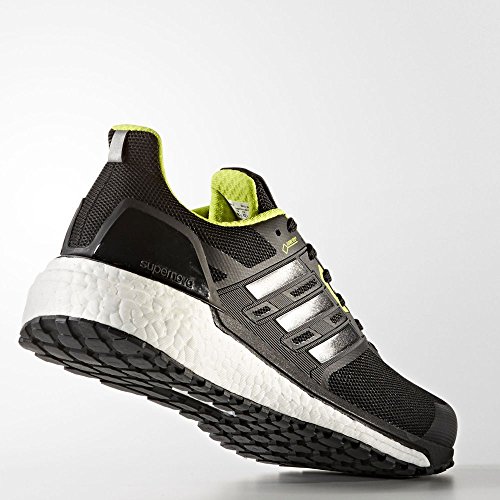 Studio : Adidas Publisher : Adidas Binding : Apparel Product Description Adidas Supernova GTX Running Shoes Rain can't stop you. It's just another challenge in your run. This running shoe for men has a breathable upper material and a boost midsole for a light, energetic running feeling. Thanks to the waterproof GORE-TEX lining, you'll be comfortable in any weather. Gore-Tex (GTX) Upper The Gore-Tex upper of this shoe ensures that the weather is not a problem for you anymore, thanks to its total waterproofing. Even though the shoe is totally waterproof, Gore-Tex technology also means it is breathable too, so you can stay totally dry and focus on your run. The upper of this shoe is also made with lightweight textile to keep the shoe very light as well as making the shoe undoubtedly comfortable. Boost Midsole The Boost midsole of this shoes ensures complete comfort and bounce back from your shoe. The more energy you put into each step, the more energy it returns. This means you can go for longer and without your foot feeling tired and worn out. Adidas' Torsion System can also be found within the midsole of this shoe. Holding the shoe together and making each transition smoother, this plastic insert helps support the arch and allows freedom of movement for the heel and forefoot. Continental Oustole The outsole of this shoe contains a Continental Rubber Outsole. Continental are one of the world's leading tire manufacturers and are known for their premium quality and superb grip. The outsole for the Adidas Supernova GTX has been designed to provide superior grip on both dry and wet surfaces. 0