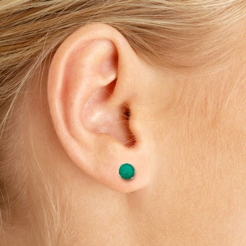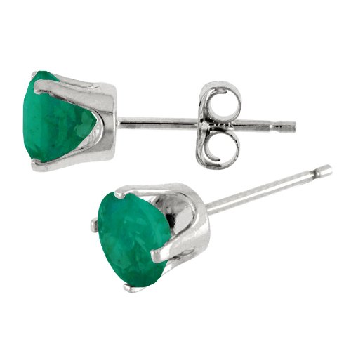 -. Title : 14k White Gold Round Emerald Stud Earrings