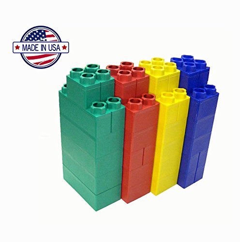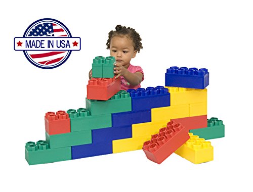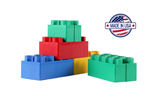 -. Feature : Made in USA / 24 pcs. Set includes, 20pcs 8" x 4" Blocks , 4pcs 4" x 4" Blocks / Interlocking design allows you to create unlimited designs and possibilities / Develop hand coordination and enhance gross motor skills / Soft rounded edges ideal for an safe indoor/outdoor play environment