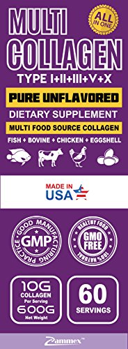 -. Feature : ✔PREMIUM ALL-IN-ONE MULTI-COLLAGEN PEPTIDES: Get all the collagen you need with this all-in-one, premium quality blend of hydrolyzed Bovine, Chicken, Marine, and Eggshell collagen peptides canister, providing collagen Types I, II, III, V and X. Unflavored and easy to mix in smoothies, soups, coffees or baked goods. / ✔ PURE & EASY TO MIX: Our Multi-Collagen is sourced from Grass-Fed and Non-GMO Beef, chicken, Marine and Eggshell Collagen Peptides. / ✔ FOR HEALTHY AND YOUTHFUL HAIR, SKIN, AND NAIL: Keeps skin elasticity, improves skin moisture level, Fights against the sign of lines and wrinkles, as well as vitalizes hair, skin, nail health. Take 1 scoop of Zammex collagen peptides to promote youthful-looking skin, non-drowsy, healthier hair, and strong nails. / ✔ FOR BONES AND JOINTS: Builds bone density, repairs tissues, supports healthier cartilage, keep joints mobility and flexibility, and reliefs joint pains. / ✔ HOW TO USE: Zammex hydrolyzed collagen peptides can quickly dissolve in hot and cold liquid, it's tasteless and odorless. Simple add one scoop of collagen peptide into milk, smoothie, juice, or regular water. Safe for daily use. Once daily. ✔ REGENERATE FROM INSIDE OUT: Improves immune and digestive health. Helps liver detox, boosts metabolism, and energy output. Support weight loss, reduces cellulites, and prevents stretch marks.