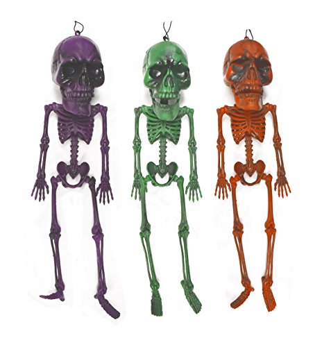Set of 6 Hanging Big Skull Skeletons 18" Length With Bendable Movable Limbs! Perfect for Your Next Halloween Gathering! (6)