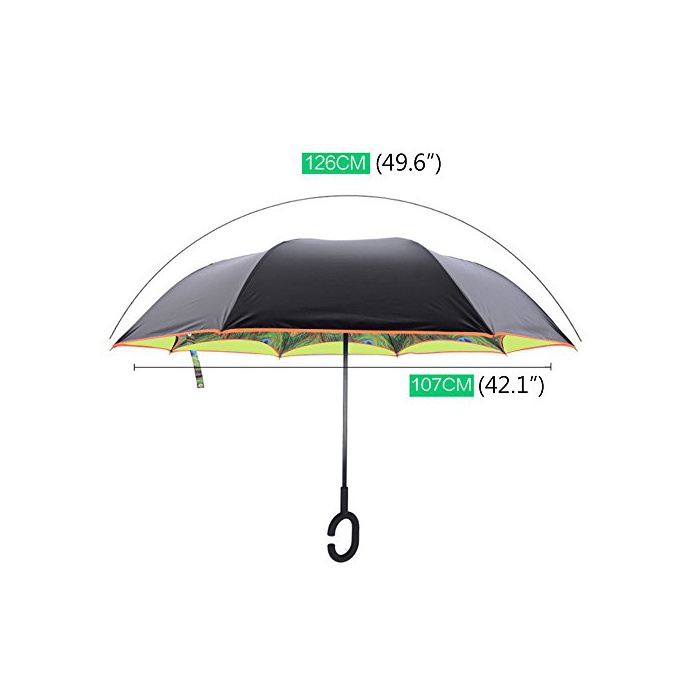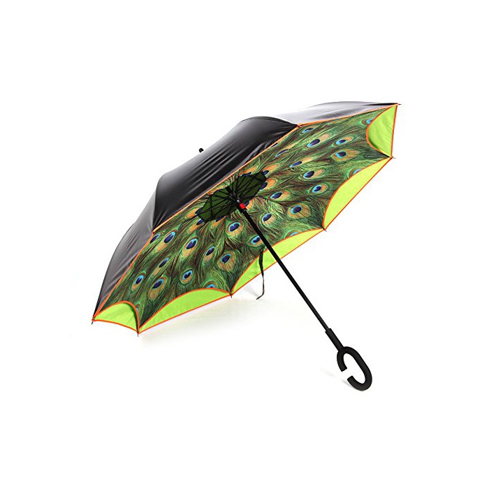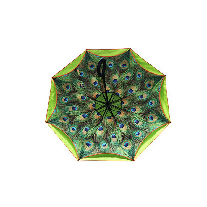 원본상품명: Vejaoo 逆折り式長傘 C型手元 8本骨 プリント傘 自立式車用 コ?ティング フック 男女晴雨兼用 ブラック (?の孔雀)