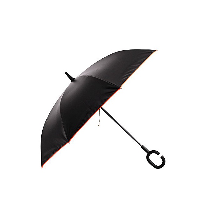 Vejaoo 반대 접어 식길이 우산 C형 눈앞 8개 뼈 프린트산 자립식 차용 코팅 훅 남녀 청우 겸용 블랙