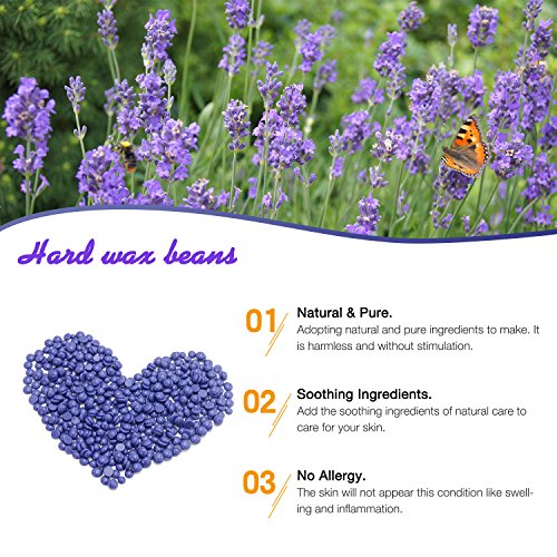 - Strongly recommended by hair removal experts ---IEOKE hard wax beans (lavender flavor) can effectively help you remove hair of any part of your body you want. You can show your big long legs, put on your favorite miniskirt and be a confident people!