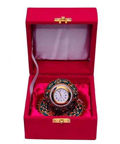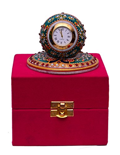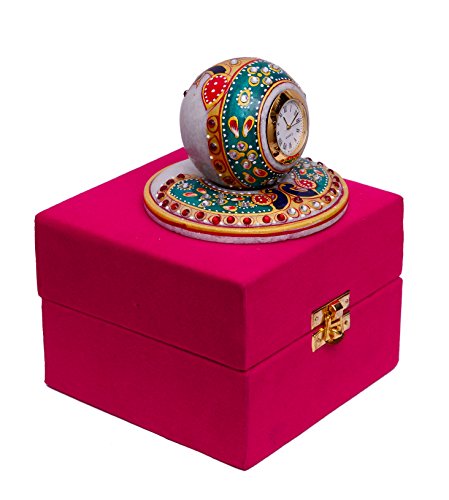 Purpledip Handmade Gift Hamper For Any Occasion - Marble Clock With Colorful Stones & Peacock Design In Velvet Gift Box (10471)