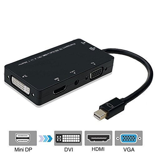 SHENFAN 4-in-1 Mini Displayport (Compatible Thunderbolt) to Hdmi/dvi/vga with Audio Output Adapter Cable Converter for Macbook Air Microsoft Surface Pro Supports 3 Monitors At the Same Time
