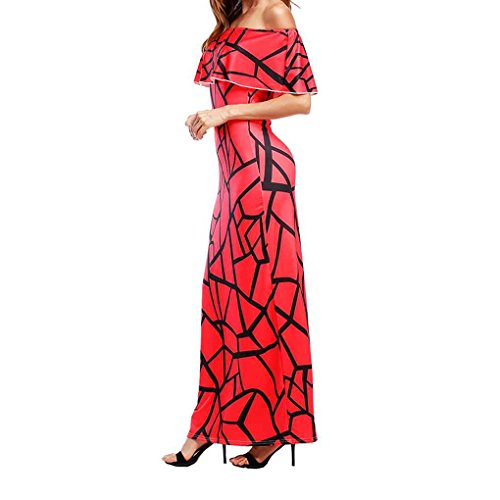 -. Feature : Occasion:evening,prom,cocktail,vacation,club / Charming:wear the right dress can show the sexiest and charming of you / New Fashion:The off-the-shoulder and ruffle design are really head-turning / Elasticity:the elasticity printed long dress will fitted your body better,show your sexy curve / Hand wash or machine, hang or line dry