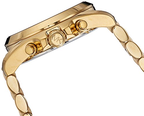 Studio : Michael Kors Watches Publisher : Michael Kors Watches Binding : Watch Product Description A polished mixed-metal finish lends luxe elegance to this Michael Kors chronograph watch, and a mix of brushed and polished links complete the look. Three subdials and a date wheel detail the dial. Hinged-snap clasp. 0