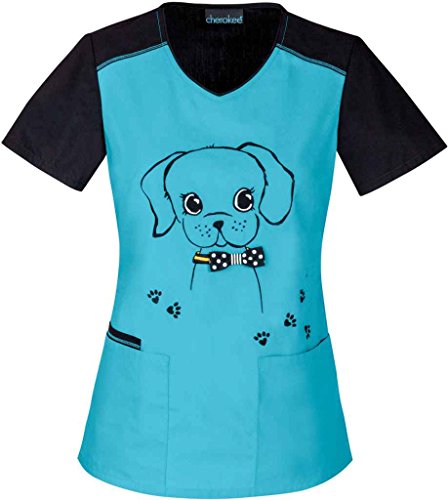 - A Modern Classic fit V-neck top features a cute embroidered puppy with bow.
