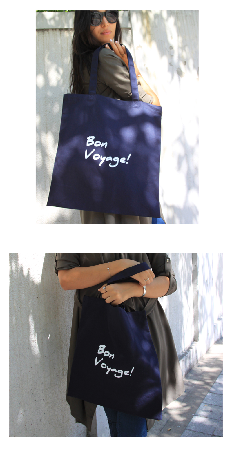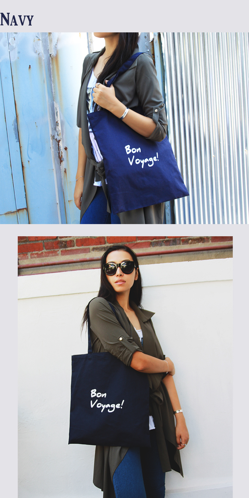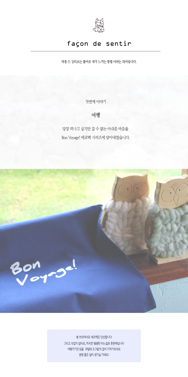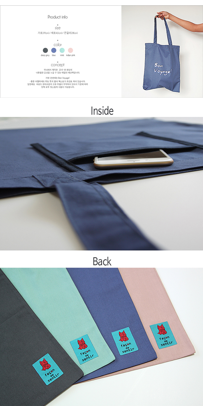 가방 전면에는 Bon Voyage! -좋은 여행되세요 라는 뜻의 언제들어도 기분좋은 텍스트가 프린트 되어 있습니다.