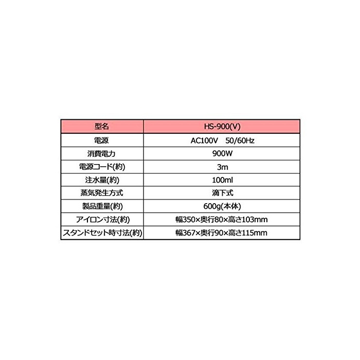 원본상품명: おしゃれスチ?ムアイロン HS-900(V)