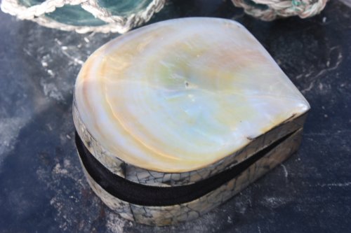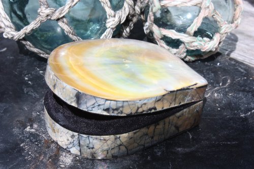 -. Title : Seashell Keepsake Box Large - Gold - Coastal Decor