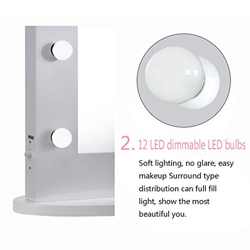 Vanity Mirror with Light Hollywood Makeup Mirror Wall Mounted Lighted Mirror + Free LED Bulbs (8065, White)