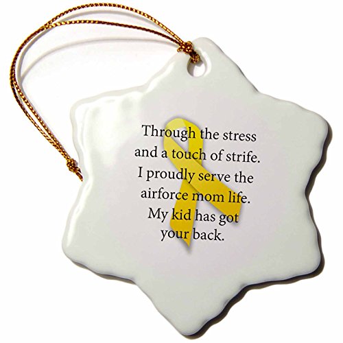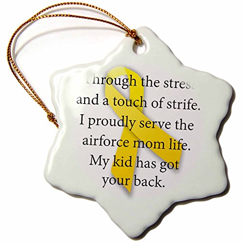 3dRose orn_123097_1 Air Force Mom Support Our Troops Snowflake Ornament Porcelain, 3-Inch