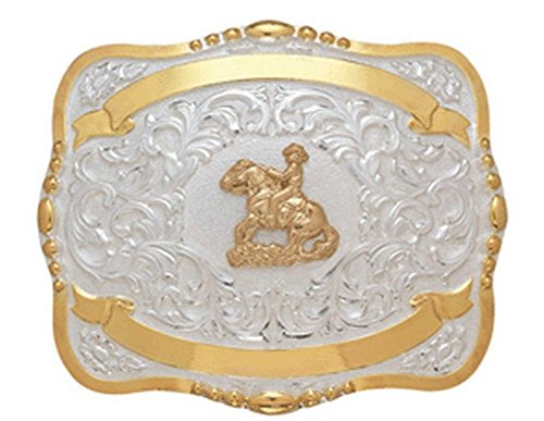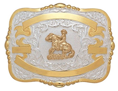 Studio : Crumrine Publisher : Crumrine Binding : Apparel Product Description Boys Crumrine Belt Buckle: Rodeo gets in your blood for life! This rectangle Crumrine belt buckle features a unique and detailed gold reiner horseman design on white with bead edges. The gold banners are perfect for engraving rodeos, dates or name as a trophy award. Available in 3 sizes: S (3 x 3 1/2") M (3 1/4 x 4 1/2") L (4 x 5"). Grandma Bait - Get Hooked 384 0