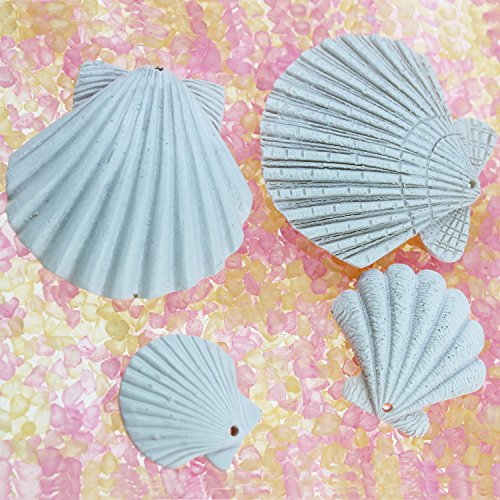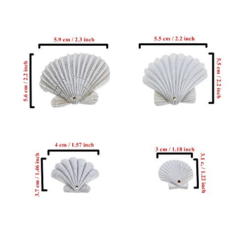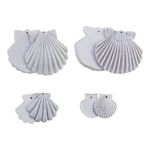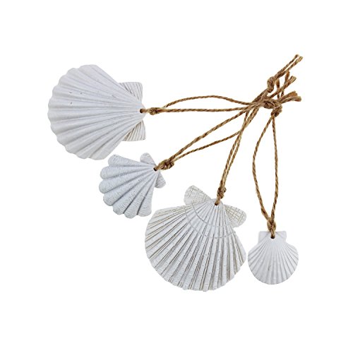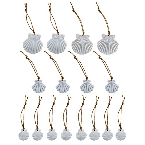 LJY 16 Pieces White Resin Seashells with Jute Twines for Beach Wedding Home Decor and Craft Project, Various Sizes