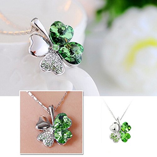 LUCKY FOUR LEAF CLOVER DESIGN CRYSTAL PENDANT CHAIN WOMEN DRESS PARTY NECKLACE GREEN