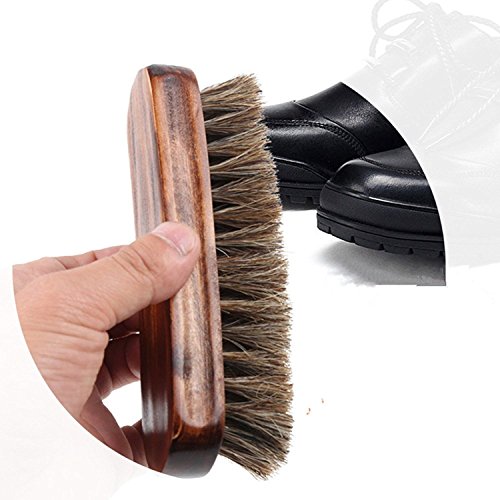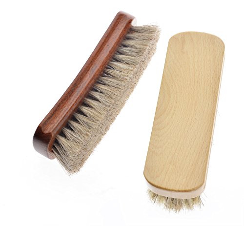 You can use our horse hair bristle brush to reduce the decontamination on the leather, with detergent, directly on the leather surface to wipe back and forth. And finally sprayed with suede skin care spray and waterproof anti-fouling spray, which can effectively avoid future besmirch. After long time use of the polishing bristles, there may be a very small amount of bristles fall (just a little bit, you can gently wipe it), please notice that after using shoes brush, clean up in time, keep it dried into the box. 0