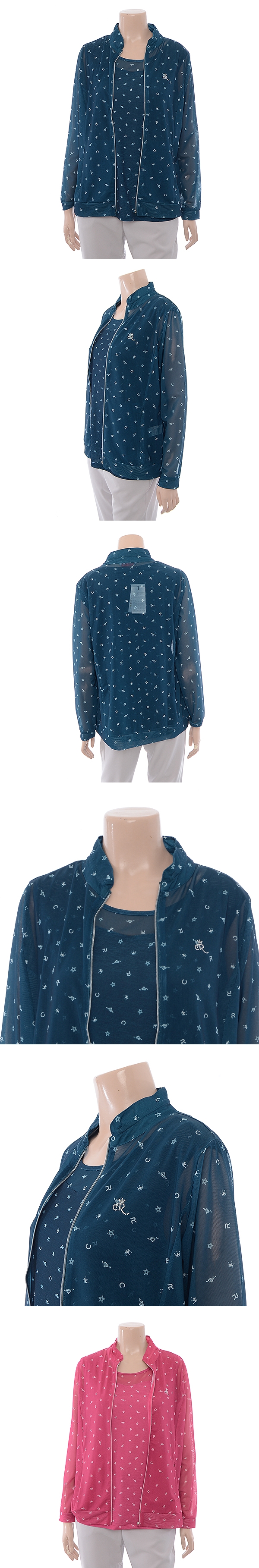 -잔잔한 프린트의 폴리 메쉬 점퍼로 시원하게 걸치기 좋은 아이템으로