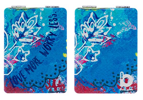 Bops Double Sided Compact Mirror – “Love More. Worry Less.” - 2xMagnification + Standard Mirror, Pocket-Size, Perfect for Purse and Travel + Artistic & Inspirational