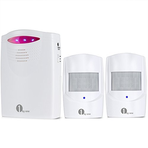 1byone Wireless Home Security Driveway Alarm with 1 AC Adapter & 1 Receiver & 2 PIR Motion Sensor Detector Weatherproof Patrol Infrared Alert System Kit
