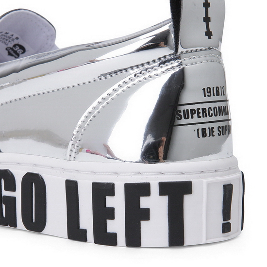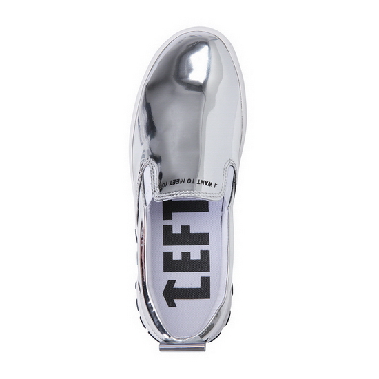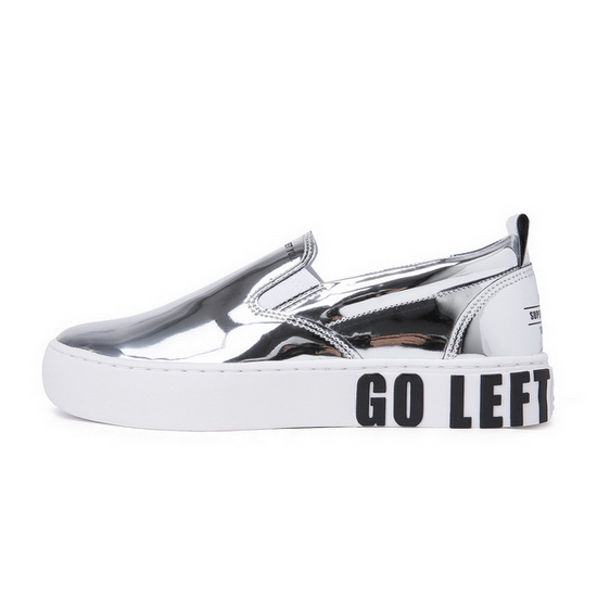 - 메탈릭 소재로 유니크한 공용 슬립온.