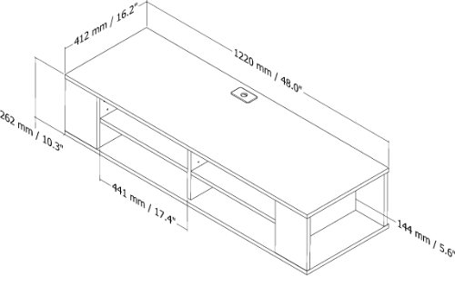 - Feature : It includes a strong and tested metal hanging system to fix it on a wall (must be securely attached to a stud) / Not made to support a television of any size / It features 4 open storage spaces including 2 adjustable shelves that can support up to 10 pounds and 2 lateral open spaces / Comes with a hole for easy convenient wire management / Complete assembly required by 2 adults; Tools are not included; 5-year limited warranty; Made in Canada
