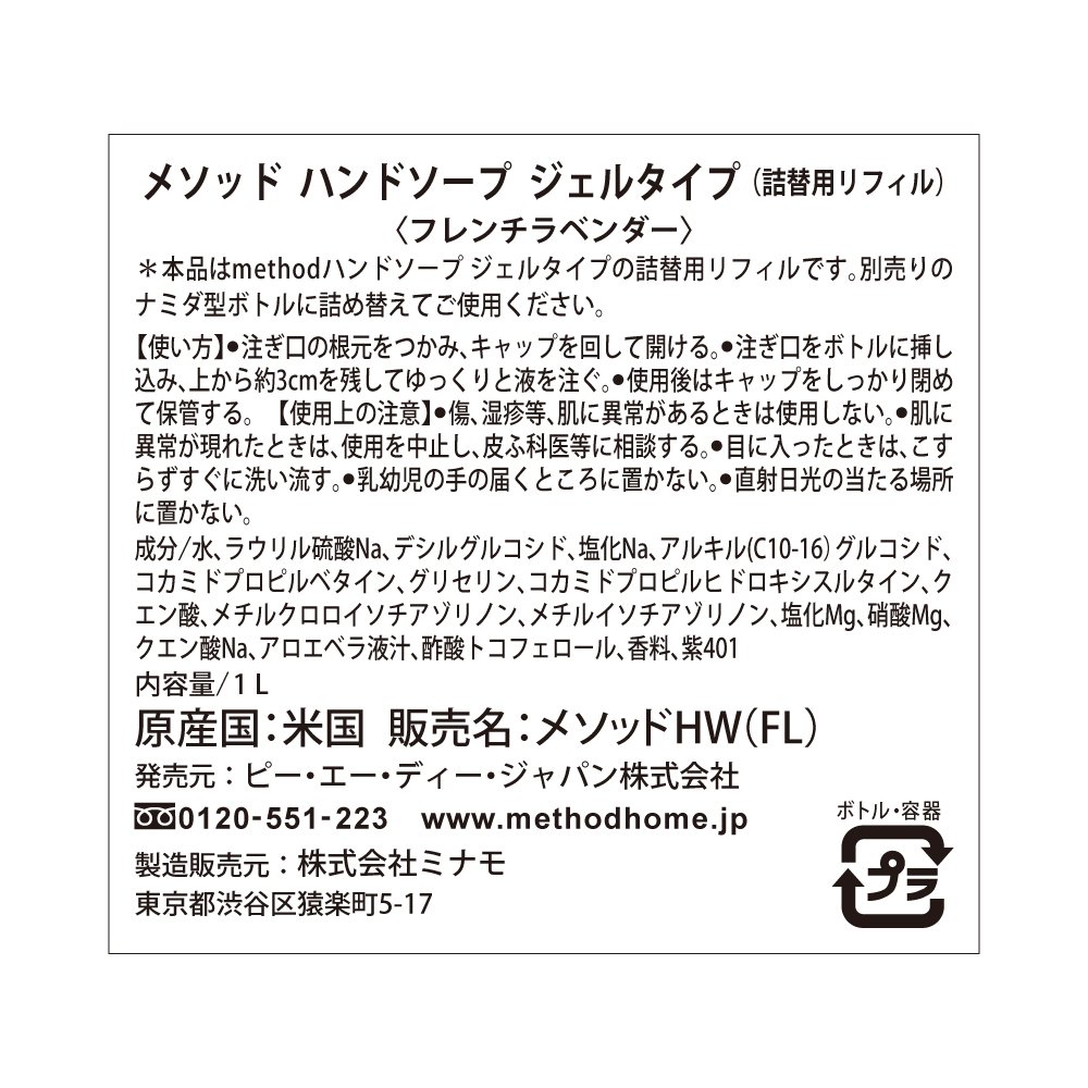 method (method) hand soap gel type refill French lavender 1000ml