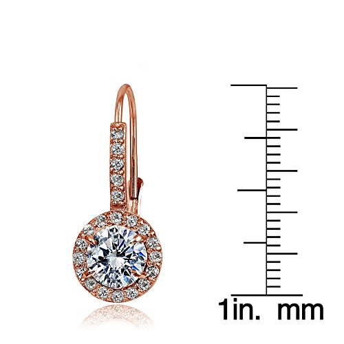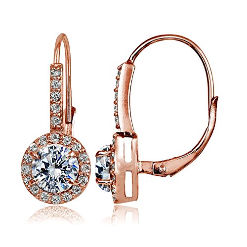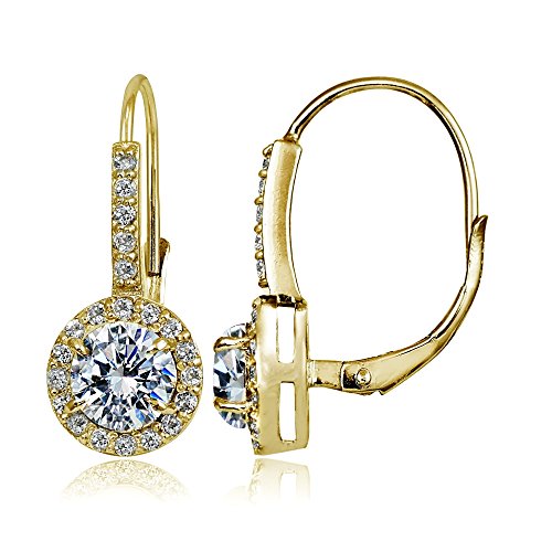 Sterling Silver, Yellow or Rose Gold Flashed Created White Sapphire Round Leverback Earrings