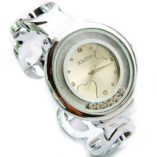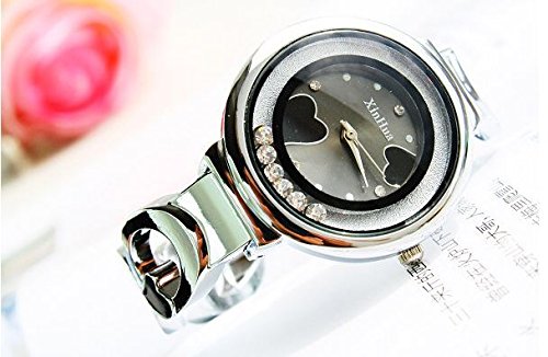 -. Feature : ブレスレット・バングルタイプのジュエリー腕時計 / ラインストーンがキラキラ転がるフェイスとカラーのハートがデザインされたバンドが特徴のオシャレ時計です / サイズ:ケース直径3.4cm  バンド長さ14cm  幅1.4cm  厚さ3mm / 素材:合金 ラインストーン / ※電池は専門店にてお取替えお願い致します。動作確認用の電池が入っておりますが電池寿命についてはわかりません。
