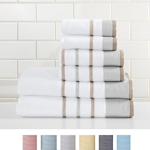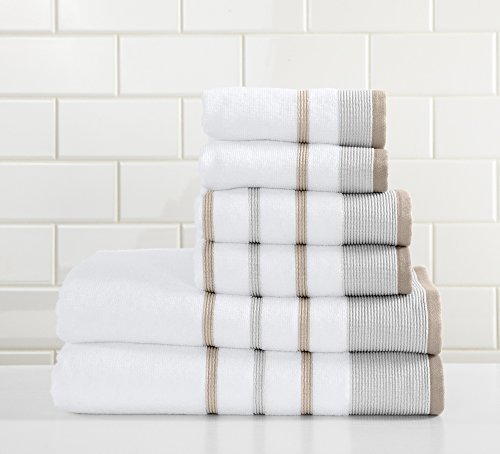 Studio : Great Bay Home Publisher : Great Bay Home Product Description Noelle Collection 6-Piece 100% Turkish Cotton Striped Towel Set These high-quality hotel/spa luxury towels add elegance and sophistication to any bathroom linen collection with their classic style and ultra plush heavyweight material. Buy them for your own bathroom or as a gift for weddings, birthdays and other special occasions.