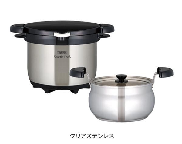 | 保温調理は時間と手間をかけずにエネルギーを節約して、素材のおいしさを生かします。さっと煮込んであとはシャトルシェフにおまかせ。グツグツと煮込み続けなくていいので、火を使わずコンロにつきっきりの必要がありません。シックでどんなキッチンにも合うカラーデザインです。200VのIHに対応しています。 |
