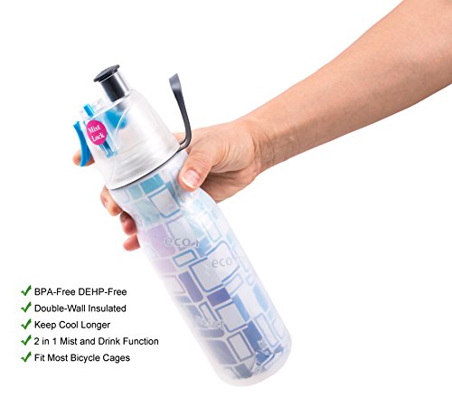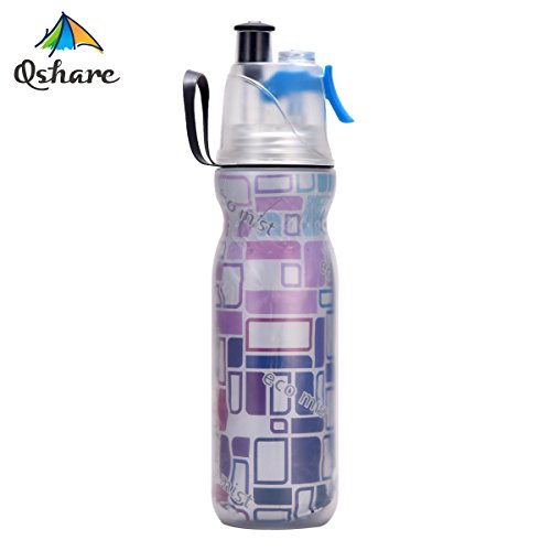 Qshare Misting Water Bottle, Insulated Bottle with Spray Mist for Outdoor Sport Hydration and Cooling Down, FDA Approved BPA-Free Mist Water Bottle with Unique Mist Lock Design