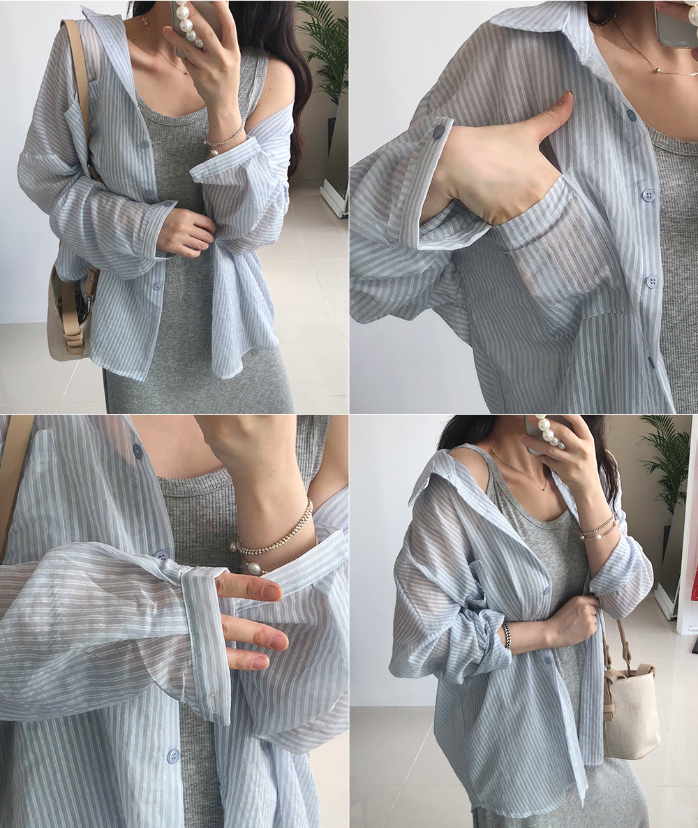 시스루 스트라이프 썸머 셔츠