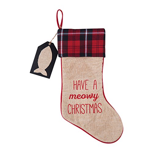 Christmas Stocking - Craft Holiday Hanging Sock Ornament, Merry Christmas Tree Decoration, Kitten - 19 Inches