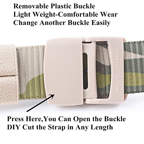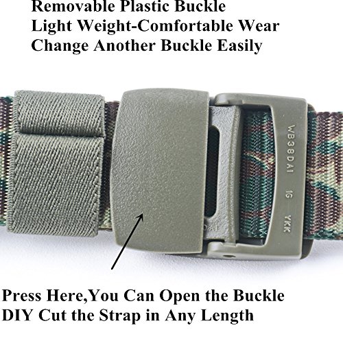 -. Binding : Apparel -. Brand : JasGood -. Department : mens -. Feature : JASGOOD Webbing Belt JA029 makes with lightweight and wear-resisting nylon material.More comfortable and breathable. / Suitable for the waist size 32 to 40 inches. The total length is 120cm(47.2 Inch), strap width is 3.8 cm(1.5 Inch). Buckle length: 5 cm(2 Inch), Buckle Width:4.7cm(1.8 Inch) / The Top quality plastic buckle is easy to wear and quick clearance at security checkpoints. / Camouflage pattern show your own taste and let you be more fashional.It can be suitable for deffrent Occasion. / Removable Buckle -- you can change another buckle easily and cut the belt length from 47.2 inch to whatever size you need. -. ProductGroup : Apparel -. ProductTypeName : ACCESSORY -. Size : 47.2 inch -. Title : JasGood Unisex Camouflage Belt 1.5 In Nylon Adjustable Web Belt with Plastic Buckle