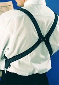 ベルトと違って腹部に負担をかけずにズボンの前後をしっかりと支えるため、ズボンが最適な状態で吊り下がり、美しいシルエットを保つことができます。ズボンの折り目の延長上にフィックスすると、より足が長く見える効果も期待できます。 |