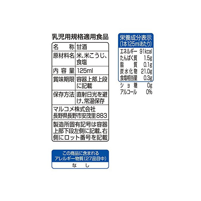 원본상품명: マルコメ プラス 米から作った甘酒LL 125ml×18本